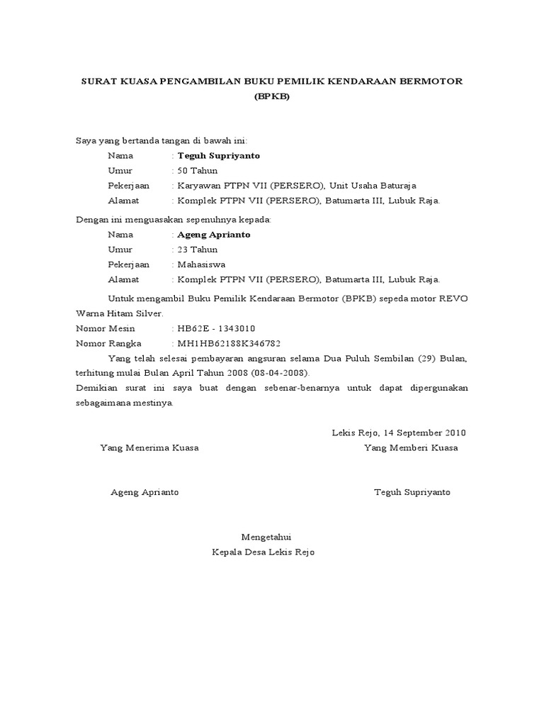 Surat Kuasa Kepemilikan Kendaraan - Surat kuasa, apabila orang lain yang mengurus pembayarannya.. 200.000.000 (dua ratus juta rupiah) dan uang jaminan sebesar rp. Fotocopy surat akta penyerahan dan bukti bayar 4. Penyerahan kendaraan pihak pertama menyerahkan kendaraan kepada pihak kedua setelah ditandatanganinya surat perjanjian ini berikut surat tanda nomor kendaraan (stnk) dari kendaraan yang dimaksud. May 16, 2021 · untuk dapat menyewa suatu kendaraan dari pihak atau perusahaan resmi, anda juga membutuhkan contoh surat perjanjian kesepakatan sewa kendaraan. Jun 11, 2008 · menyediakan fasilitas parkir yang memadai minimal untuk 20 kendaraan roda 4 dan 40 kendaraan roda 2 disertai dengan minimal satu toilet untuk konsumen, 3.